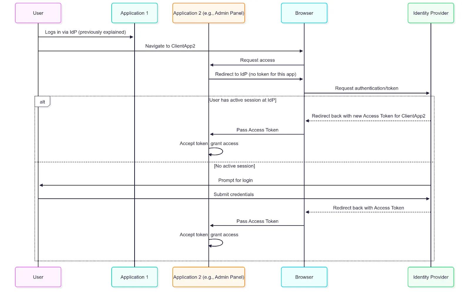 - Later, the user tries to access another application within the same ecosystem (e.g., the Admin Panel).